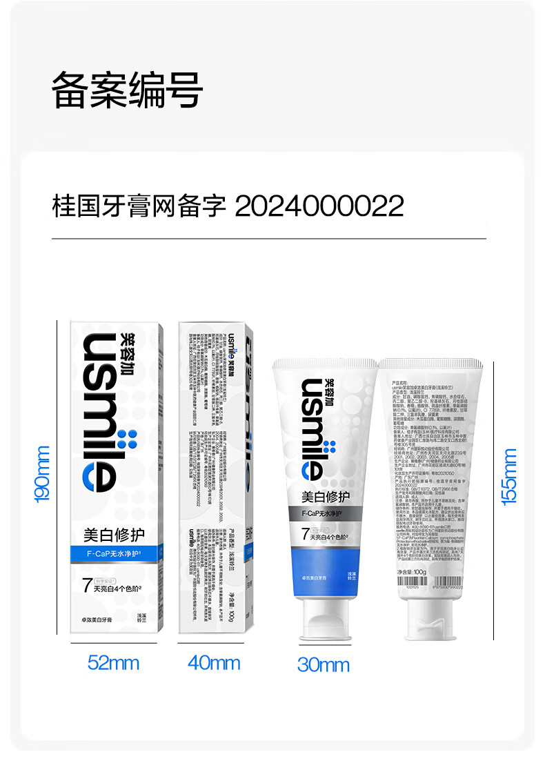 商品名称:(超运·禾贸)usmile笑容加 卓效美白牙膏(浅溪铃兰)80g*2支 无损美白牙膏