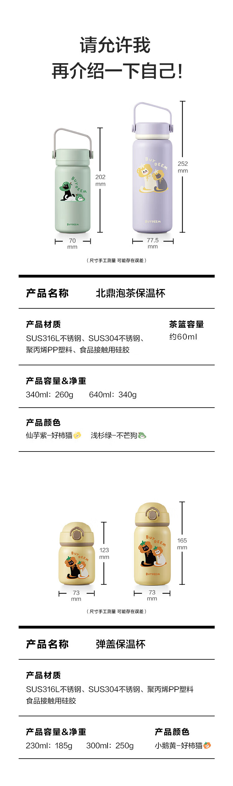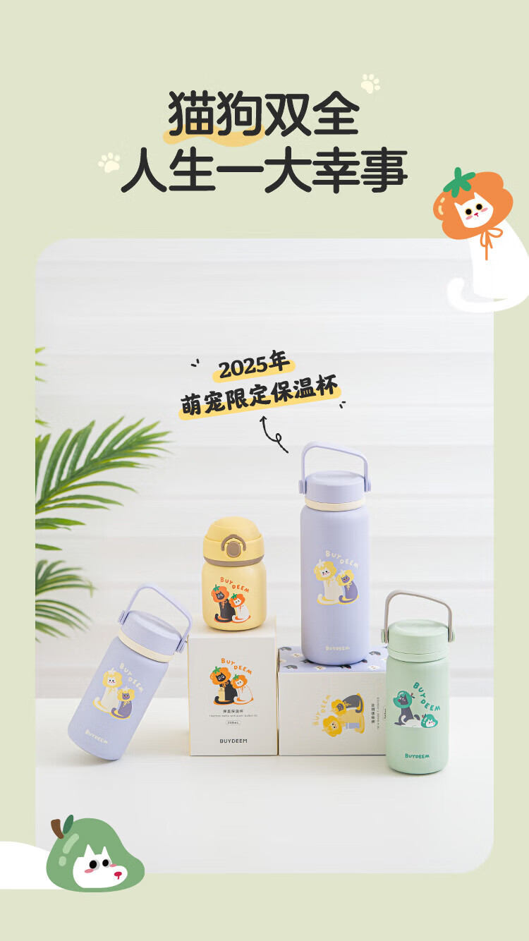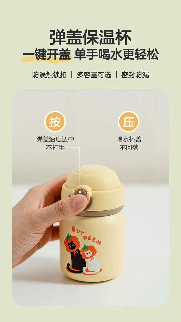 商品名称:(巨邦佑)R+北鼎萌宠保温杯300ml柿子猫-弹盖保温杯 茶水分离杯 大容量实用水杯 家用高颜值泡茶杯礼物