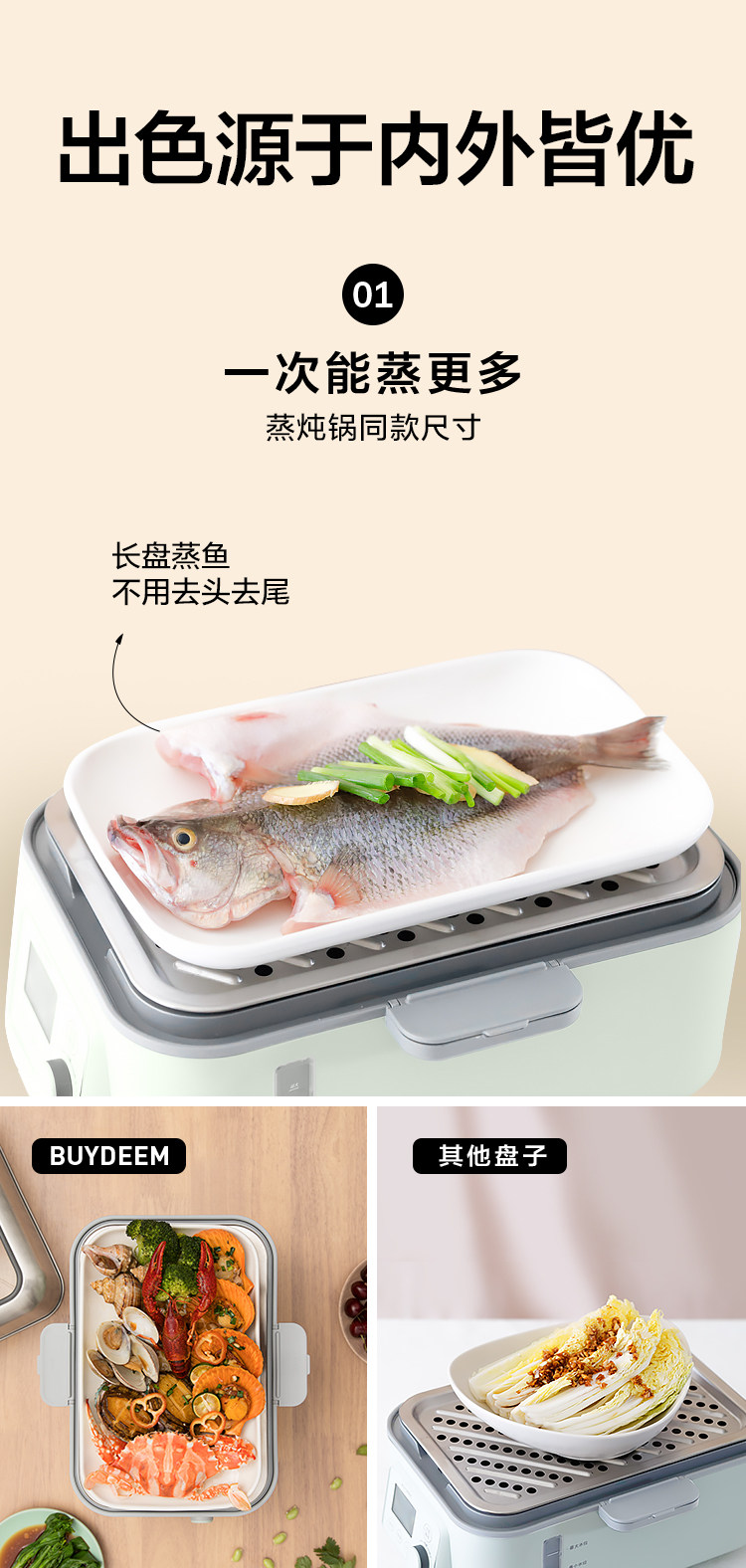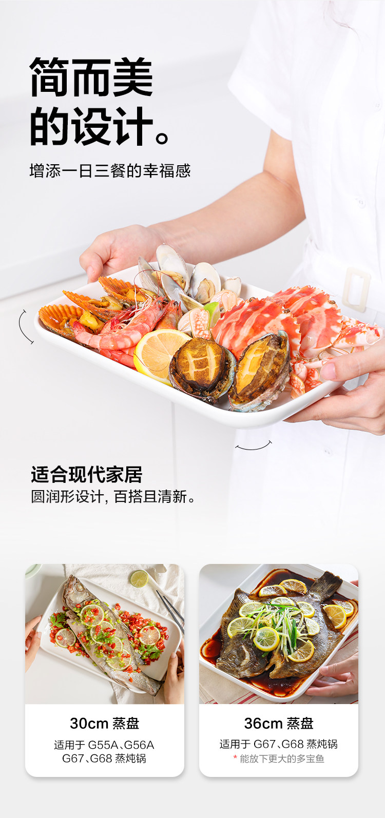商品名称:(巨邦佑)R+北鼎 36cm陶瓷蒸鱼盘 本白色 适配多功能蒸炖锅G67G68G76