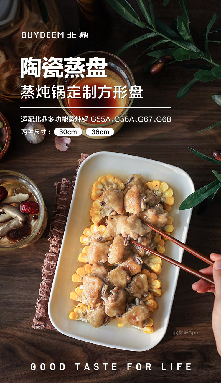 (巨邦佑)R+北鼎 36cm陶瓷蒸鱼盘 本白色 适配多功能蒸炖锅G67G68G76