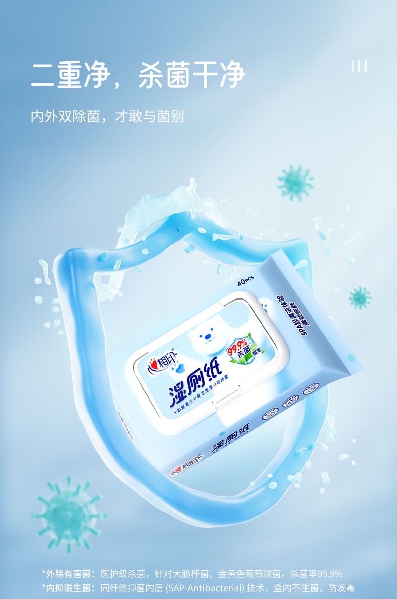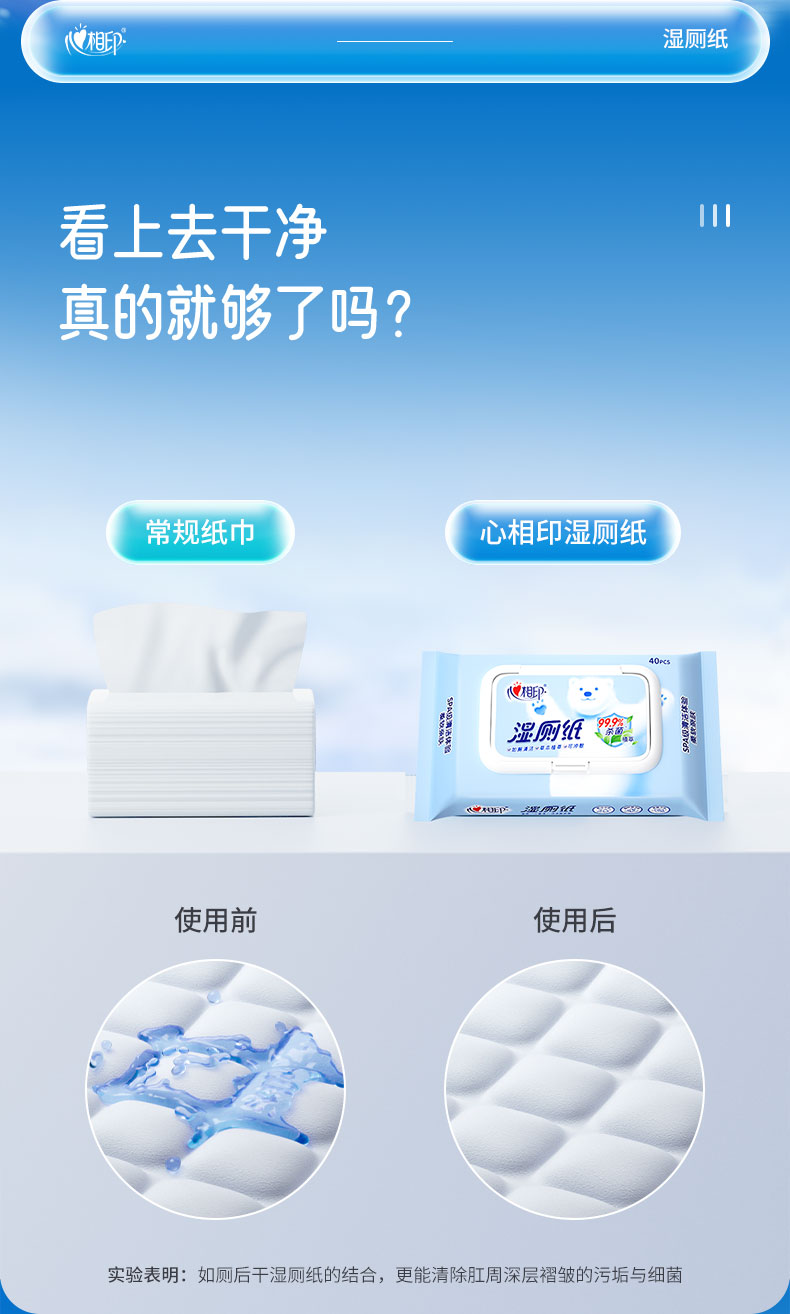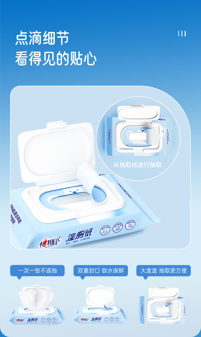 商品名称:(超运·禾贸) 5XSA040(包装)心相印湿厕纸系列湿巾40片*5包套装 湿厕纸洁厕湿巾纸私处专用杀菌擦屁屁湿手纸男女卫生湿纸巾家庭装